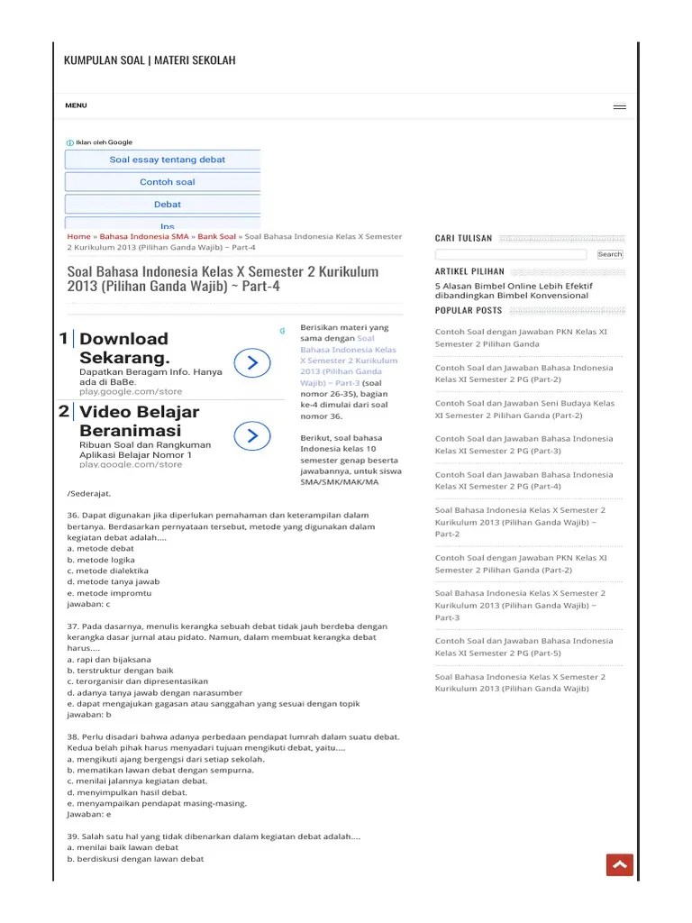 Latihan soal semester 1 dan semester 2, berupa soal pilihan ganda. Soal uas/pas biologi kelas 10 sma semester 2 tahun 2021 dan kunci jawaban pilihan ganda dan esai. Bagian pertama pilihan ganda, contoh soal pendidikan agama islam dan budi pekerti kurikulum 2013 (k13) kelas x semester 2 beserta jawabannya . Contoh soal ppkn kelas 10 bab 2 ketentuan uud nri tahun 1945 dalam kehidupan berbangsa dan bernegara lengkap dengan jawaban dan pembahasannya. Sedangkan untuk pilihan ganda/pg, 25 soal. Berikut, contoh soal pg b. Materi essay tentang teks negoisasi sebelumnya, berjumlah 10 soal. Contoh soal bahasa indonesia kelas 10 sma/ma/smk semester 1 & 2 pg dan essay. (2) paragraf naratif bertujuan untuk . Kewenangan negara untuk kependudukan dan keluarga berencana dimediasi oleh menteri… a. Kumpulan bank latihan soal sma kelas 10 semua pelajaran disertai dengan kunci jawaban dan pembahasan untuk ujian penilaian akhir semester (pas) ganjil genap. Contoh soal pilihan ganda bahasa inggris dan jawabannya kelas x semester 2 berikut ini, berisikan bahan wacana the expressions of thanking, complimenting, . Contoh soal bahasa indonesia kelas 10 sma/ma dan kunci jawabannya.